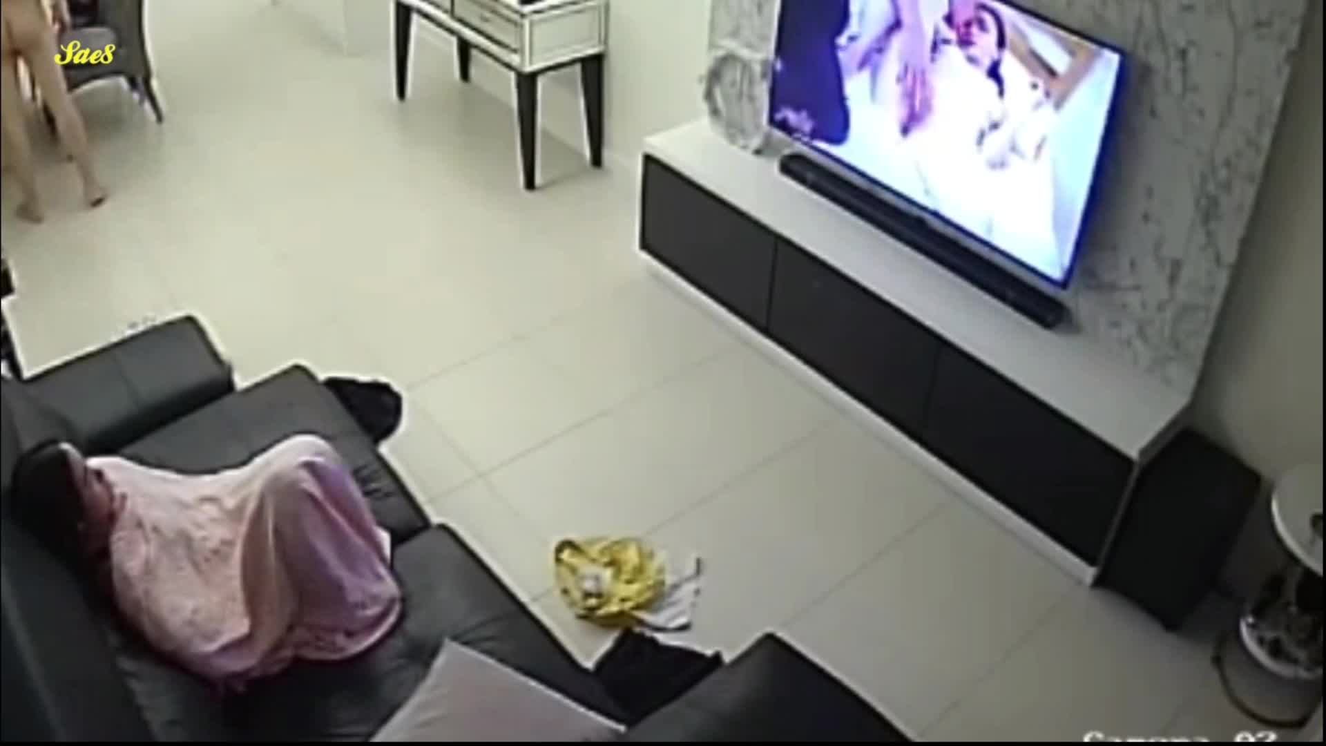 家庭监控被黑拍下新婚小夫妻在家看小电影赤身裸体尽情享受性爱。